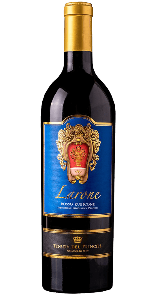 The aromatic profile of Larone is in fact drawn from the perfect harmony of four types of grape, balanced in an unprecedented blend in which the King Sangiovese (50%) is enhanced by combination with two impetuous native vines (Malbo Gentile 25%, Centesimino 15%) and the spicy touch of Syrah (10%).